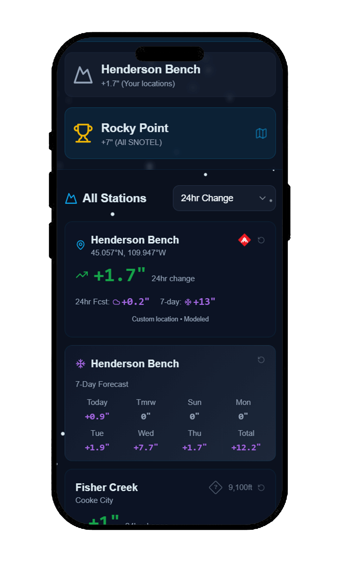 Get notified when your spots are about to get hammered. Never miss a powder day.